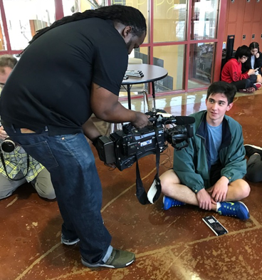 Local news photographer interviewing one of the students about what it’s like to work with Rover