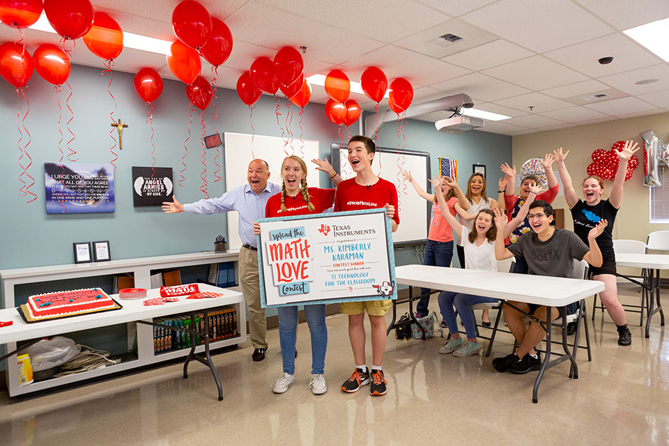 Connor said he was up late one night scrolling Instagram (don’t tell his mom) and saw a post about Texas Instruments’ (TI) Spread the Math Love Contest. He knew immediately that he had to nominate her — a former college math professor turned classroom teacher — because she inspired his deep love of math. In his submission, Connor wrote, “Just as my mom has become a female pioneer of mathematics and technology, I have followed in her footsteps, and because of her, am interested in the same topics.”