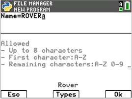 After everyone has coded (and tested) their projects, move to the hallway for a “race.” Have groups swap calculators. (You don’t want the students to already know the selected questions.) Line up at the starting line. Ready? Set. Go! The race is on! See which team gets the farthest the fastest. When creating the project, choose “Rover” from the Type menu. This will automatically add the required library imports.