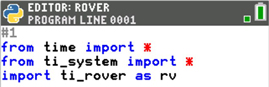 I think the most exciting part about Python on the TI-84 Plus CE Python graphing calculator is the ability to drive the TI-Innovator™ Rover using Python. In the past, I’ve spent the first two weeks of the year teaching my students TI-Basic on the Rover. Day one, students practice sequential programing using only rv.forward, rv.left and rv.right. I set up obstacle courses and let students problem-solve the steps needed to complete the course. This physical setup teaches students that coding is sequential. Day two, I ask students to code various regular polygons. After coding a regular square, triangle and hexagon, students see the need for iteration (loops). Later on, sensor inputs such as color or ranger measurements can be introduced for selection (if) statements.