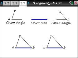 This activity is intended to provide students with an opportunity to discover three methods of proving triangles congruent: SSS, SAS, and ASA.