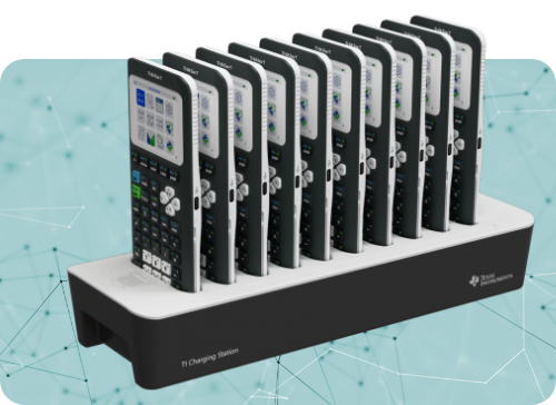 In die Ladestation passen bis zu 10 Grafiktaschenrechner, die dort gleichzeitig aufgeladen werden können. So sind diese stets einsatzbereit und ordentlich nach Klassen organisiert.