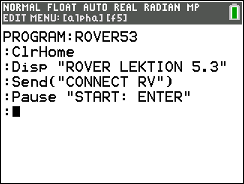 Dann folgt der übliche Befehl Send (“CONNECT RV”) aus dem Menü prgm > Hub > Rover (RV)…