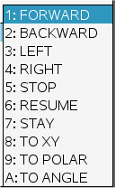 Bemerkung: “RV STOP” bricht alle Fahrkommandos ab.