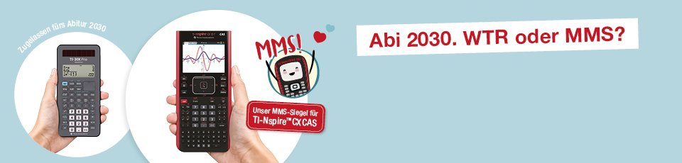 Ein Update für das aktuelle TI-Nspire™ CAS steht rechtzeitig zur Verfügung. Nach erfolgreicher Prüfung durch das Sekretariat der Kultusministerkonferenz wird dieses Update den Anforderungen für das Abitur 2030 entsprechen.