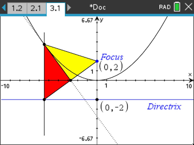 Students see the difference between a function (parabola) that is provided as a model compared with a theoretical result. They use triangle congruence, Pythagoras (distance between two points) and algebra to prove the theoretical result.