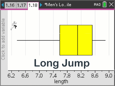 Students use world record data for the long jump event and represent this data using a variety of graphical representations.