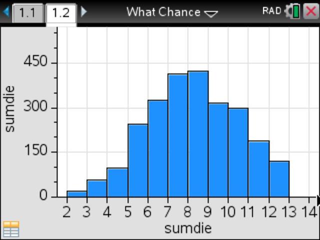 Part 2 - Focuses on generating results for a larger number of trials, and the use of count commands and histograms as tools for analysing these results. It also introduces relative frequency as an approximation to the theoretical probability of a particular outcome.