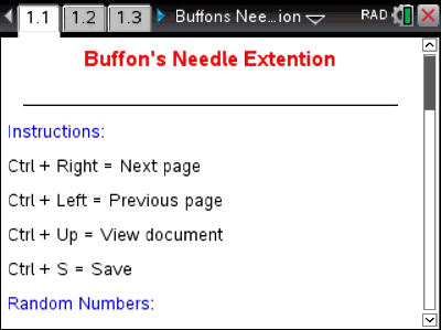 Students start by estimating the probability to Buffon’s Needle problem using a digital simulation. A program is then used to simulate 1000’s of results, combining class aggregates produces 10,000’s of results. The aggregated result is approximately equal to 2 / pi. The activity then includes a dynamic representation of the needle and boards integrated with a corresponding graph to help students arrive and understand the analytic solution.