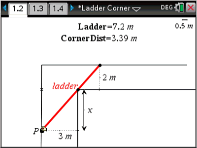 Maddi the painter needs to work out the longest ladder that she can get around a tight hallway corner. Students formulate an expression, step by step, to build a relatively complicated expression for the total length of the ladder. Students use the CAS to differentiate and make equal to zero. Then what? Why does the function minimum value align with the longest ladder? This activity encourages students to reflect and think about their answers to what might otherwise appear as an automated response.