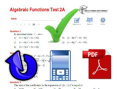 Formative or Summative Assessment for algebraic functions applicable to Mathematical Methods Unit 1 and 2