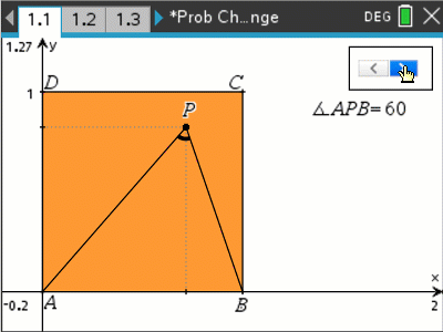 A triangle is formed such that two vertices are on the base of a unit square and the third vertex somewhere within the square. What is the probability that the angle at this third vertex will be greater than 90 degrees? What happens to the probability if a different angle is used? What is the general formula for the probability? Students use a mixture of geometry and probability to determine the answers. The interactive nature of TI-nspire helps for both the geometrical and probability approach to solving the problem.
