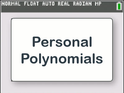 Students express their name as a set of points by exchanging letters for numbers. Students then need to determine the polynomial equation that passes through all of their points. (Simultaneous Equations) Where does it cross the x and y axes? What is the degree of your polynomial and why? Each student's answer is essentially unique, making this an ideal problem solving and modelling task (PSMT). Teachers can email our teacher support team for a copy of the answers.