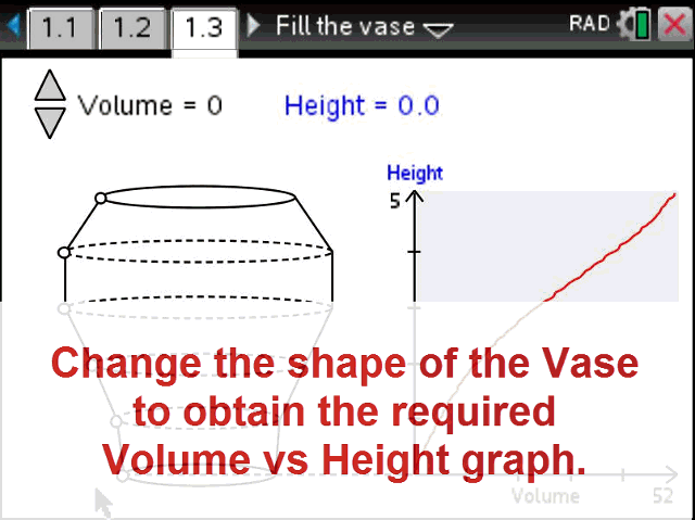 The teacher notes provide practical suggestions on how this lesson can be introduced, including YouTube videos and data collection, both options provide quickly accessible contextual and empirical data. The student questions provide forward and reverse conceptual development. Students respond to questions requiring them to produce a volume-height graph for a given vase and then the reverse, draw a picture of a vase given a particular volume – height graph. The final question challenges students to draw a graph if the water is flowing out at a constant rate.