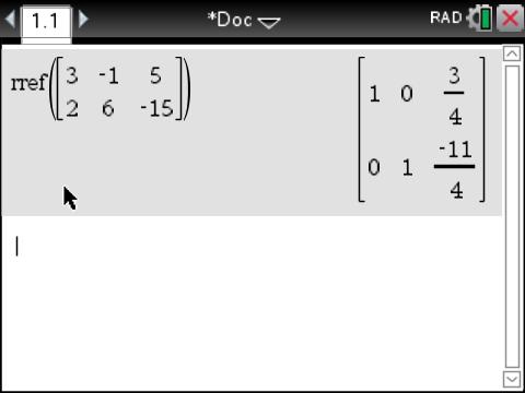 This task is suitable for students in Year 11 mathematics, who have completed some work on solving pairs of simultaneous linear equations. It can be completed in a double lesson. No prior experience of matrices is assumed or is needed. The matrices are used as a relevant representational form for the algorithm. The focus is on the use and interpretation of a matrix solving command rref, short for reduced row echelon form. The rref command employs an iterative algorithm that reduces a system of linear equations to equivalent and unique equations in their simplest form.