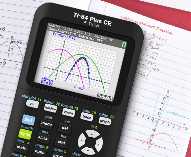 The TI-84 Plus CE Python offers core graphing capabilities in a sleek design for middle school through college — with full color, more memory, and more speed than the TI-84 Plus.