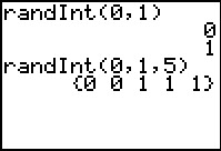 In this activity, students are introduced to using the Random Integer command to simulate an experiment. First, they will explore the difference between entering the command randInt(0,1) five times and entering randInt(0,1,5).