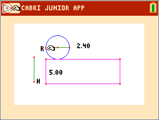 They use D. & Length tool to find the length of the rectangle. Students use the Calculate tool to divide the length of the rectangle by the radius of the circle. The dimensions of the net can be changed, students drag the points R and H.