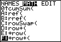 In the first problem, students enter a matrix and use the row operation commands to reduce a matrix.
