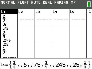 Students will order and compare numbers, including fractions, decimals, and percents. Students will use the Sort command on a given list to determine the greatest and least number.