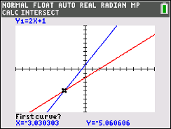 For the homework problems, students will write two equations (a system) for solving a word problem. In lists, they will enter three pairs of numbers which can be displayed on the graph with a Stat Plot. Once the two linear equations are entered, the graph will reveal the solution to the problem. Students can verify the solution with the Intersect tool.