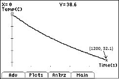 With the data from the time-graph, students have the option of using the equation solver to calculate the cooling constant of air. From the paramedic's report, students can use the constant to estimate the victim's time of death.