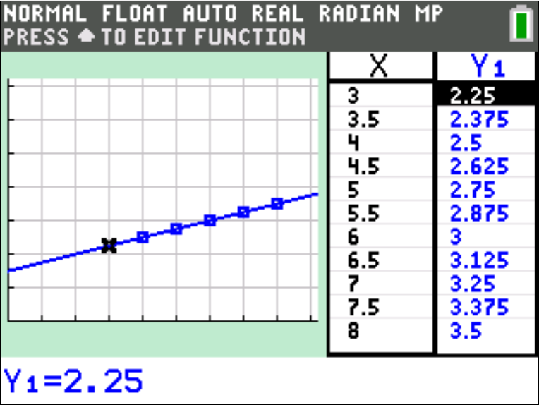 Finally, students analyze the table of function values generated from function representing the video rental scenario.