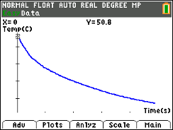 - Collect temperature versus time data of a cooling object and graph a scatter plot.