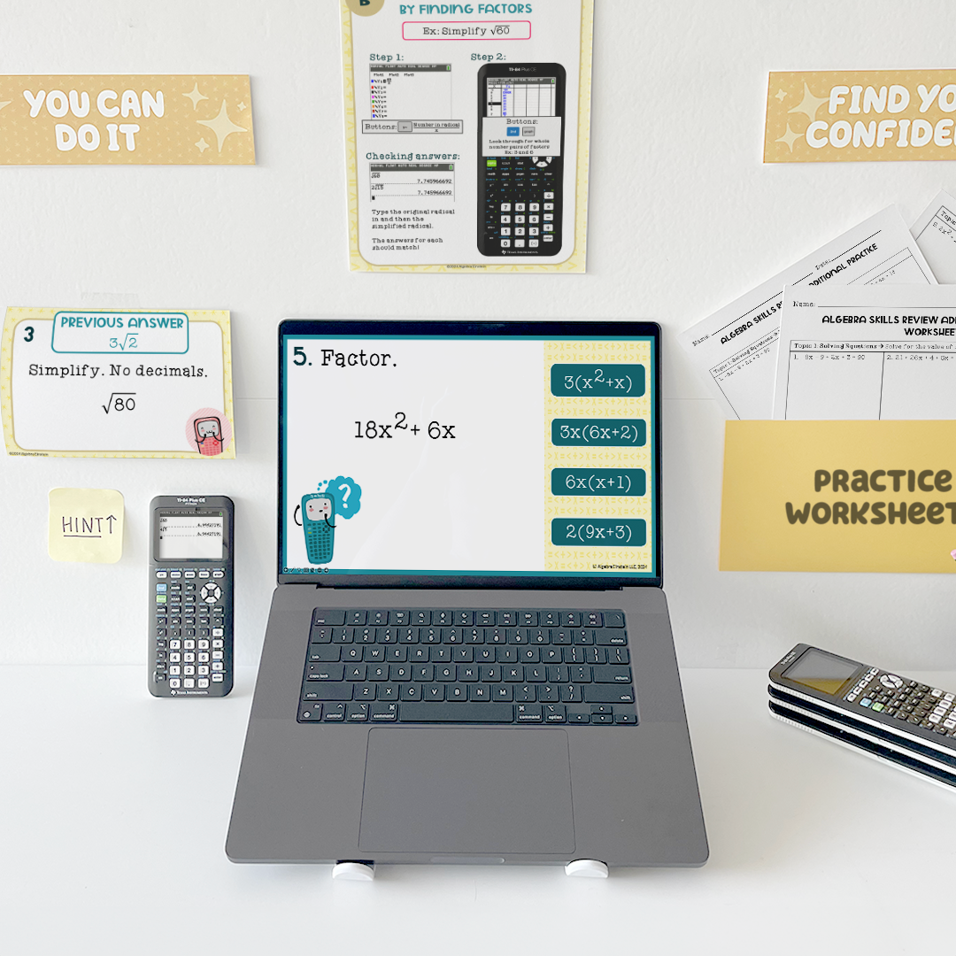 This set of activities is an excellent way to refresh students’ algebra skills and prepare them for geometry, while using a TI-84 series calculator to check and support their answers. Created by Ashley (@algebra.einstein), an educator with years of experience teaching everything from 6th grade math to honors-level precalculus classes.