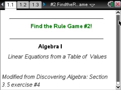 Linear Equation Games Unit: Activity #2 Find The Rule Game #2