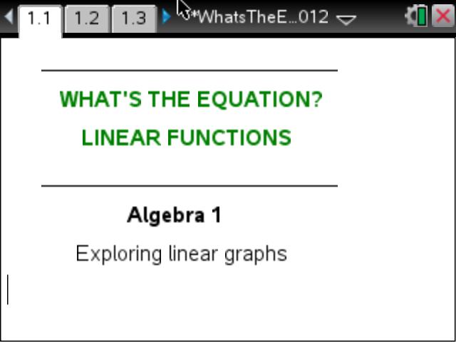 Linear Equation Games Unit: Activity #4 What's My Linear Equation