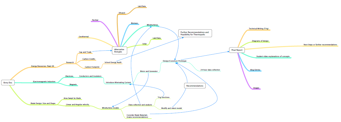 An investigative project based learning activity incorporating math and science through the connections among Chemistry, Physics, and Trigonometry. Project leads to consideration of the feasibility of alternative energy options based on research and local data. Student activities culminate in the design of wind-turbine models and prototype. The project can easily be adapted to all courses, or may be the focus of one class individually based on preferences, needs, materials, or other restraints.
