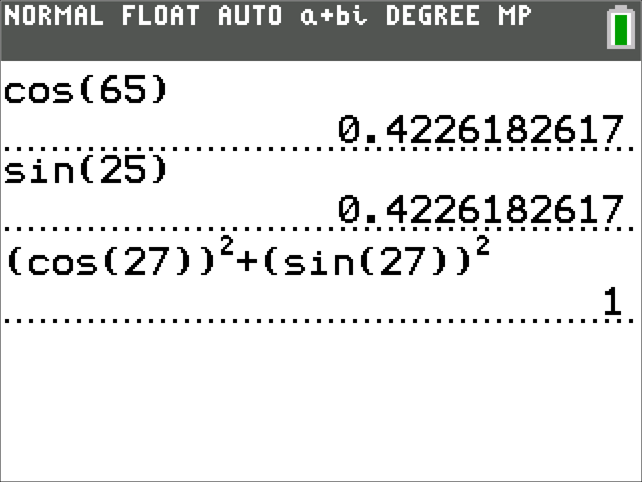 For trig questions, it is important to make sure your calculator is in DEGREE mode. You can check by pressing the mode key and going to down to the third row.