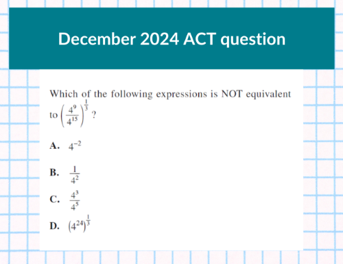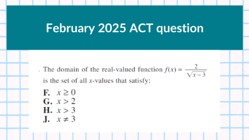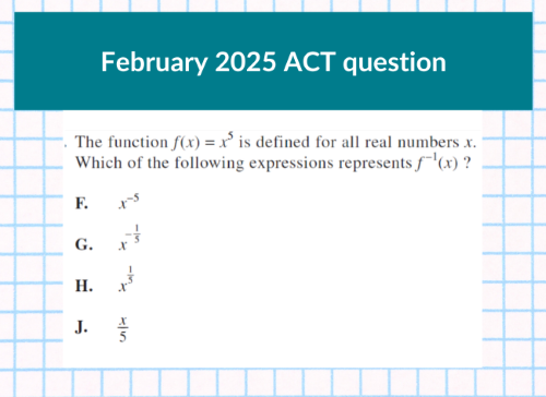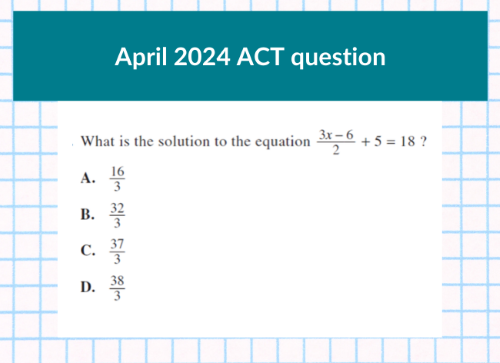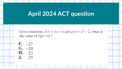 One of the keys to doing well on the ACT® math exam is to be open to solving problems in non-traditional ways. The average ACT® score of the students at my school is a 30. Many of my students, who could solve problems the traditional way, choose alternative methods that might be faster or easier to pull off.