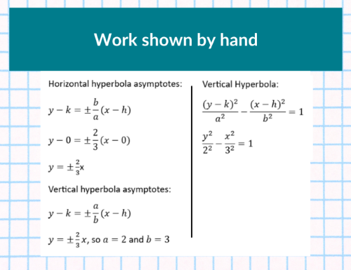 If a student doesn’t know the formula for a vertical ellipse (which many students don’t have memorized), the traditional method of solving this problem is not possible. Adding to the difficulty of the test question, the form the answers are in is not what students would expect (with the exception of answer choice “E”).