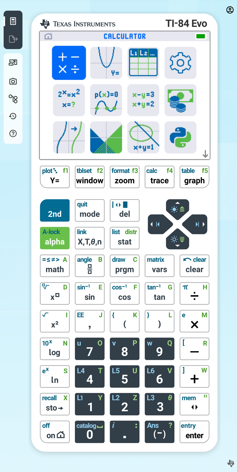 TI-84 Evo online graphing calculator