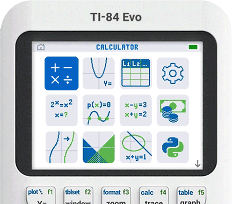 The TI-84 Evo introduces a new icon-based home screen that puts the most popular math tools in plain view. Find what you need in seconds with intuitive navigation that’s organized for clarity and speed.