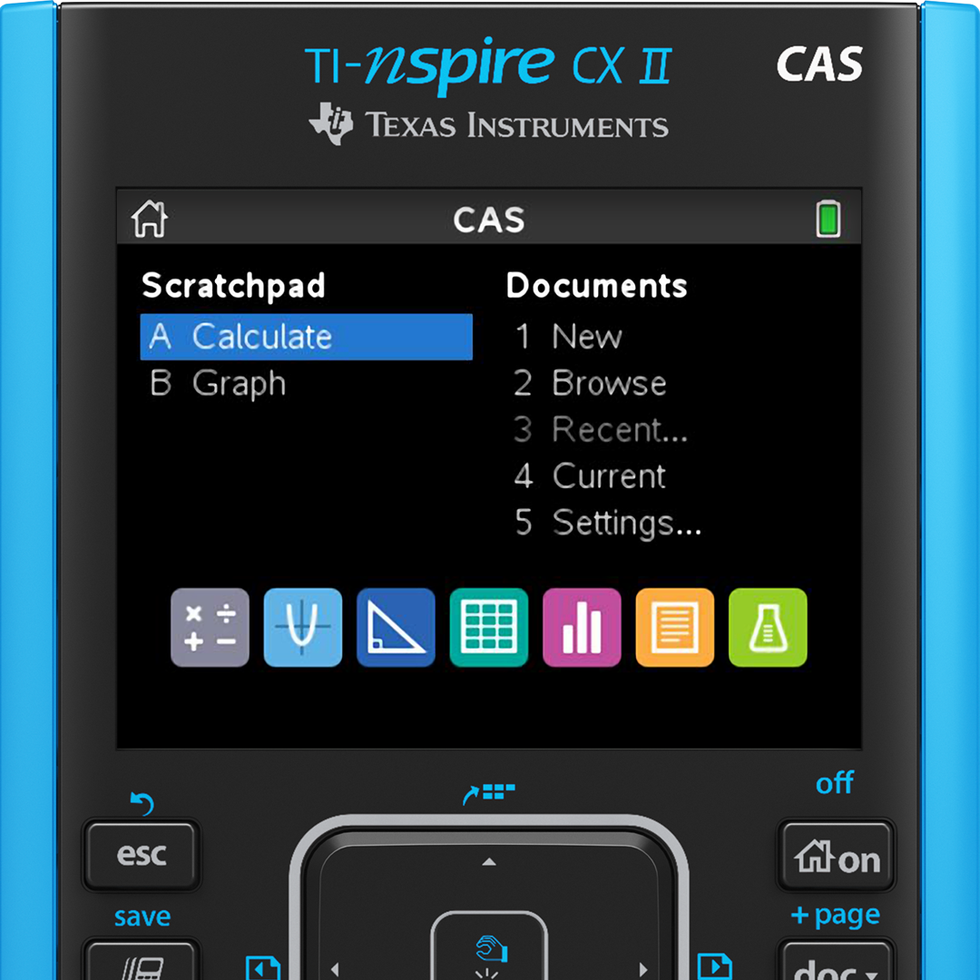 The TI-Nspire™ CX II CAS graphing calculator offers advanced math capabilities beyond the standard model — ideal for teachers and students to explore equations in symbolic form and to see both exact and approximate solutions.