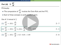 The videos below are divided into two sections: resource and technology. In the resource videos, you’ll find information on scoring, common misconceptions and techniques for approaching topics in the released free-response questions. The technology videos show the tech solutions available using your graphing calculator.