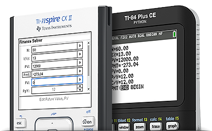 The finance solver app is built into the TI-83 Plus, TI-84 Plus and TI-Nspire™ families of graphing calculators. Before purchasing your own calculators, check with your school math department to see if you already have access to TI technology.