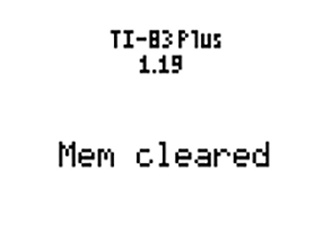 MEM Cleared is displayed to confirm the calculator has been reset to default settings.