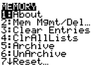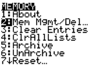 Press [2nd] [MEM] and select 2: Mem Management/Delete.