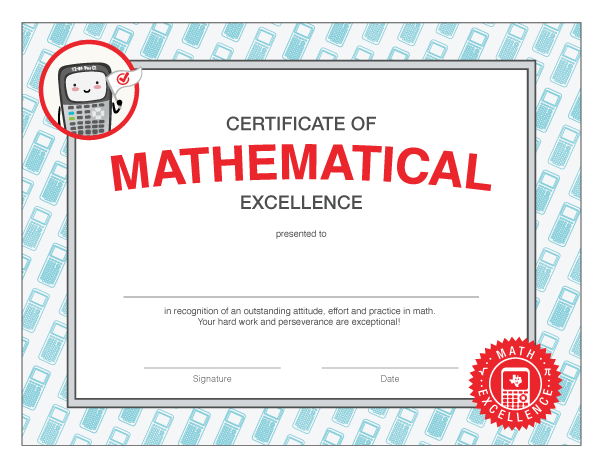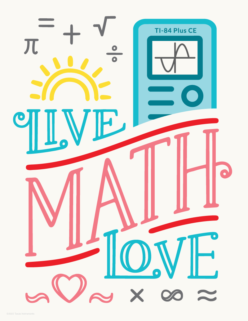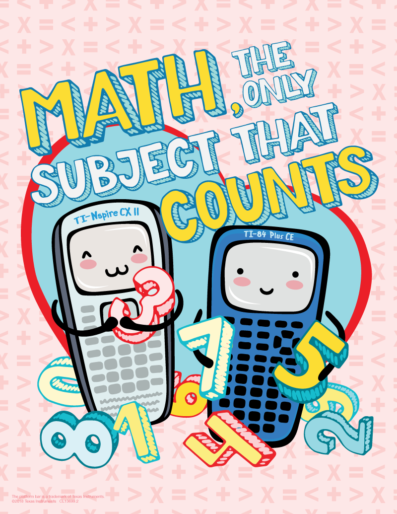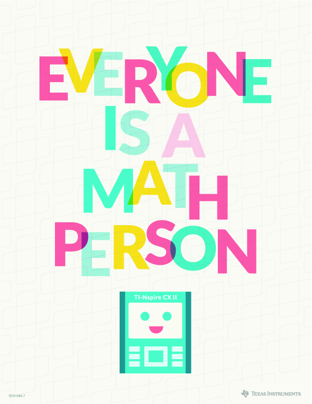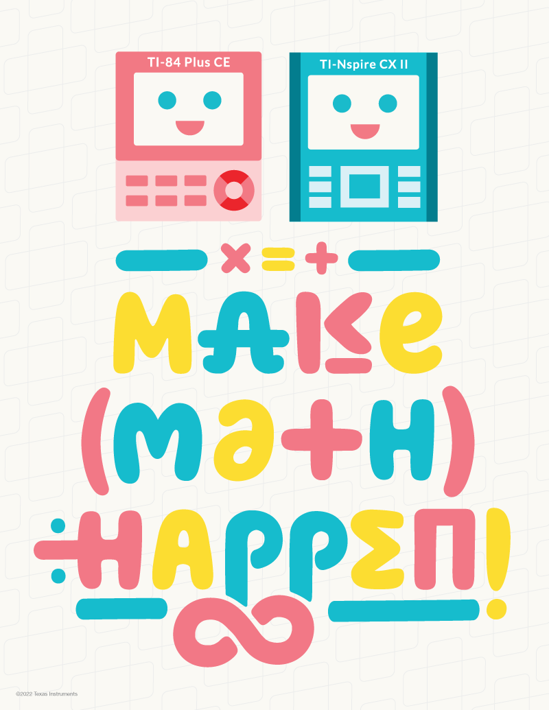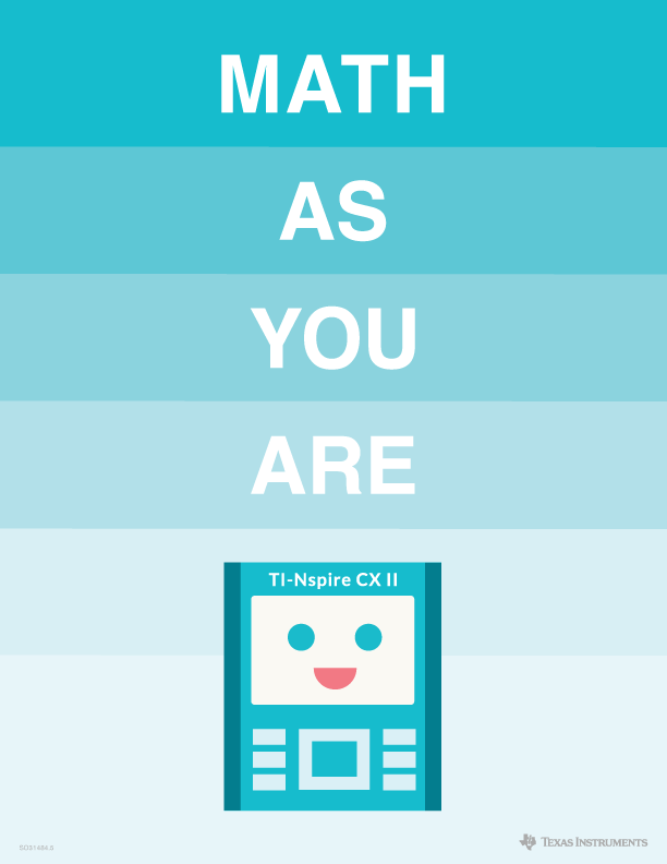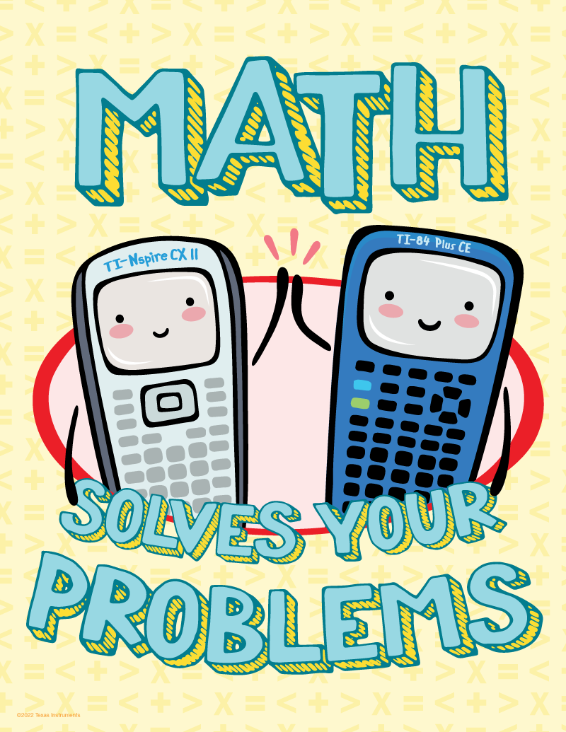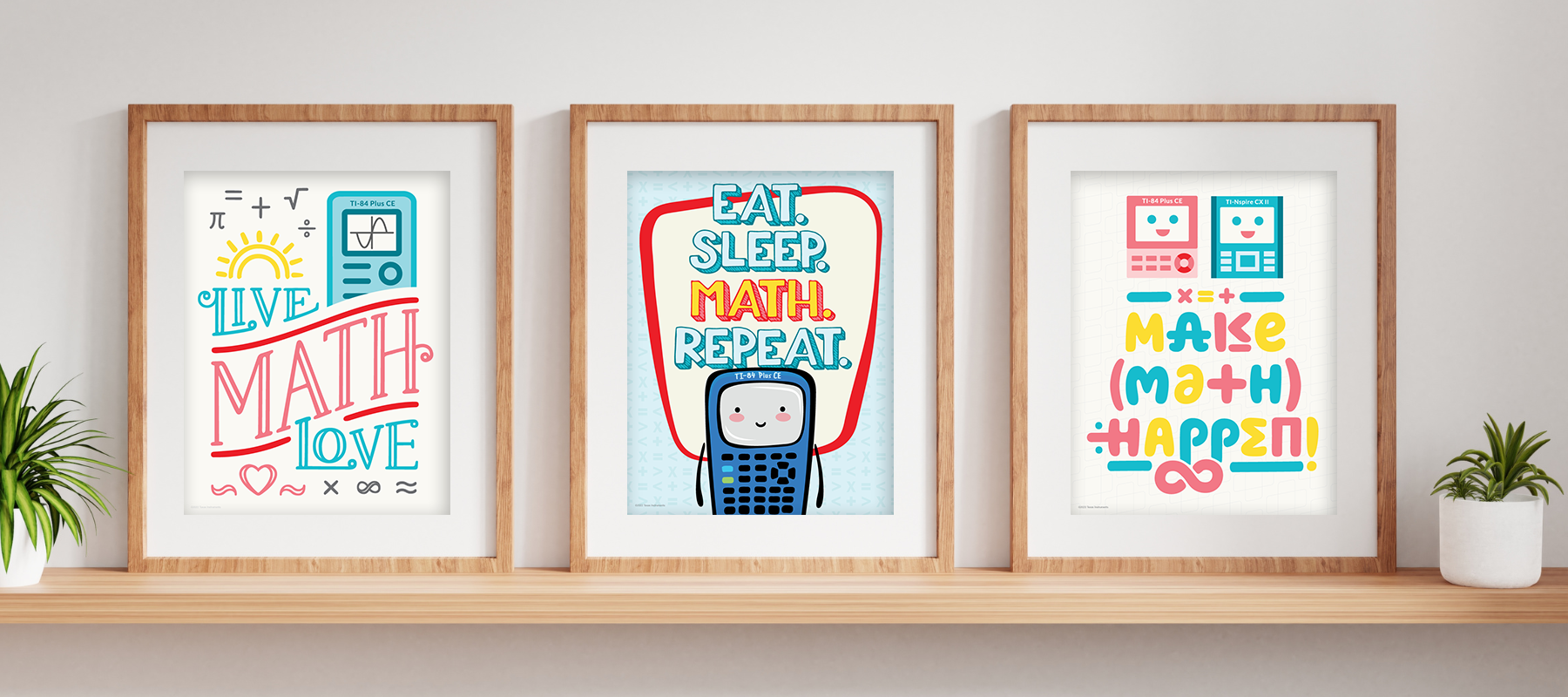 Choose from a variety of motivational designs by calculator models: TI-84 Series, TI-Nspire™ CX family, TI-30XIIS™, TI-30XS MultiView™.
