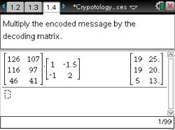 This lesson involves using matrices to encode and decode a message.