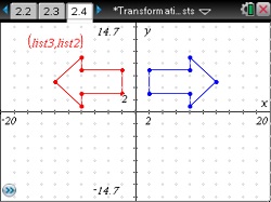 Students create a scatter plot with connected points using the combinations of lists. For each combination, students determine what type of reflection or rotation occurred.