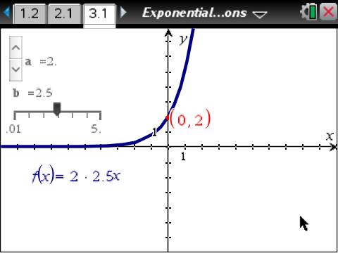 • Explore specific values of a and b, and then generalize the effects of both a and b on the graph, the domain, and the range of the graph of an exponential function.