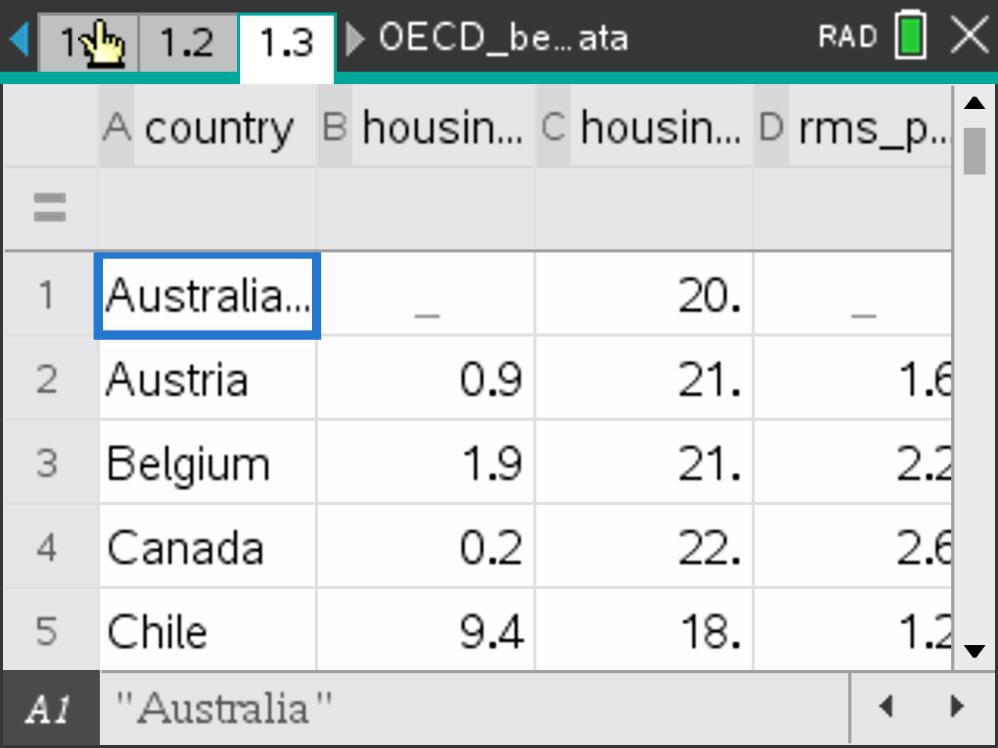 The data in this activity are from the OECD well-being survey updated version July 2022. The data have different units and magnitudes, and some values may be missing. The data might be used to investigate questions related to well-being such as the status of the US, comparing the US to selected countries, or how a particular variable such as education plays out across the countries. The file OECD_spoke_diagram.tns can be used to look at how a country fares across all of the variables and also contains a filter program that allows the user to create displays or calculate statistics using a subset of the countries.