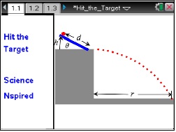 This lesson is an exploration by students of the range of a marble that rolls down a ramp and off a table. The goal is for students to develop a mathematical model that will allow them to hit a target placed on the floor on the first try.