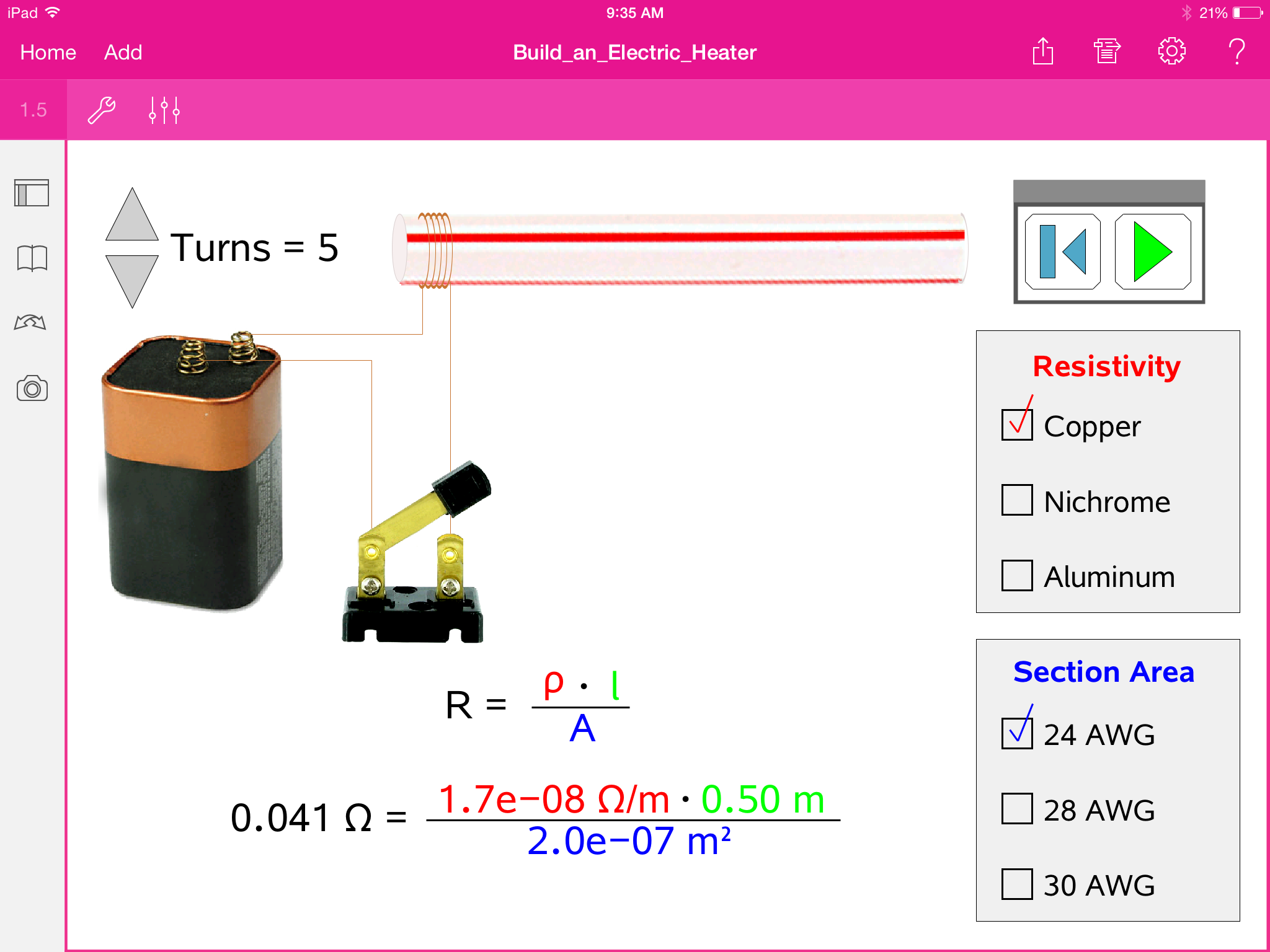 - Use a simulation to understand and model the effects of wire type, cross section and length on heating power.