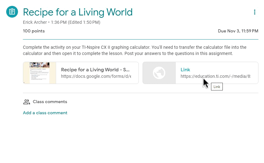 It's easy to use TI's science activities with a Learning Management System (LMS), TI-Nspire™ CX II graphing calculator and TI-Nspire™ CX II Connect (a free file-sharing app).